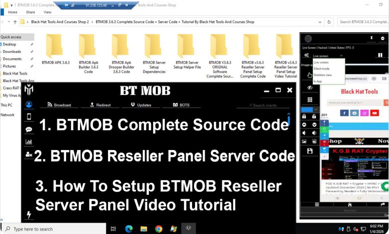 What is the BTMOB Source Code? This is very powerful and the father of all Android RATs that can be used remotely worldwide, In this package you will get [ BTMOB 3.6.3 complete source code + BTMOB 3.6.3 complete reseller panel server code + BTMOB 3.6.3 compiled software + How to setup BTMOB 3.6.3 reseller panel on rdp server practical video tutorials + Helping softwares + Dependencies ].
