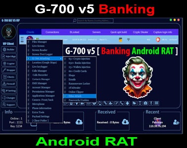 G-700 v5 Banking Android RAT With [ 1000+ Banking Stealing Injections + Cryptos + Wallets & Credit Cards Stealing Injection ] Works On All Latest Android Devices Upto Android 15 – Hack Mobile Phones Remotely